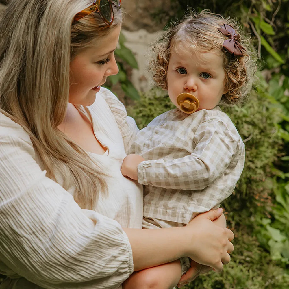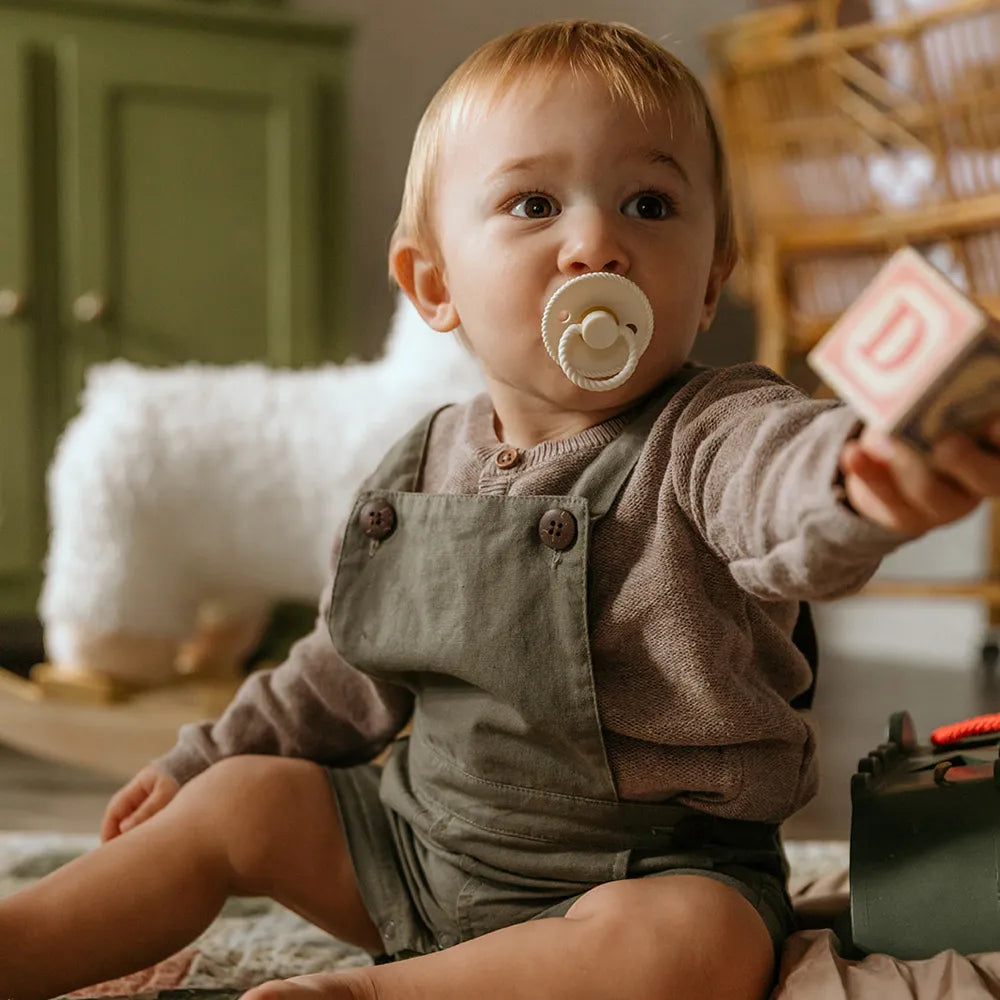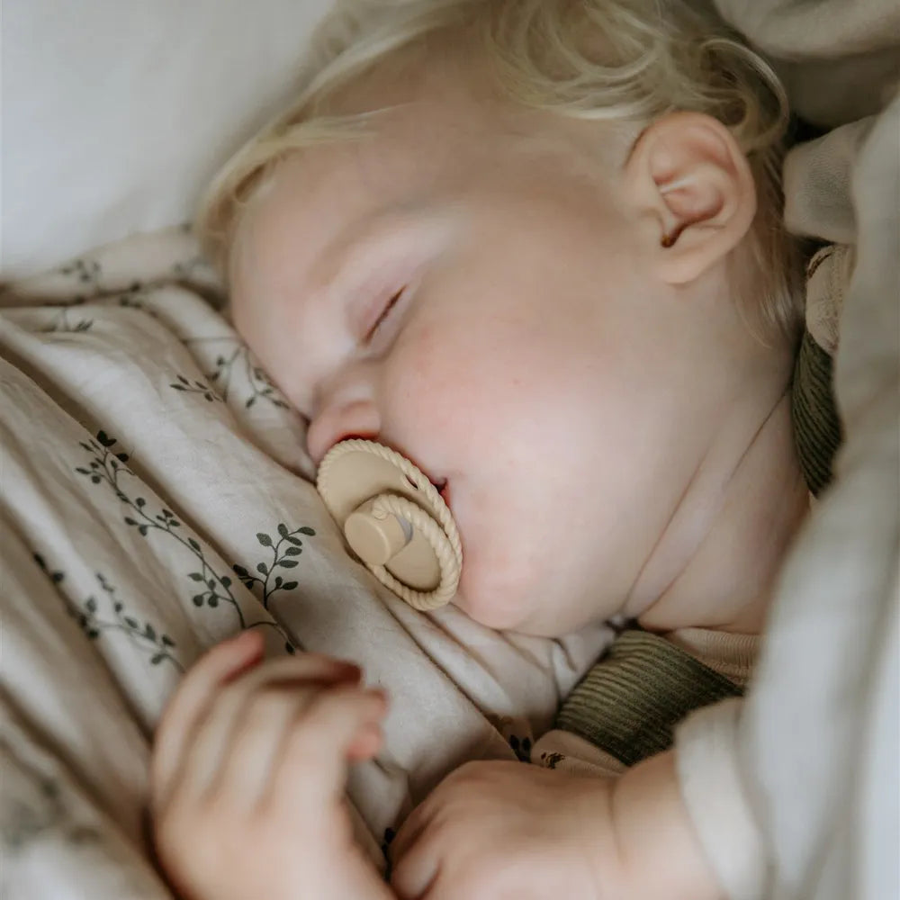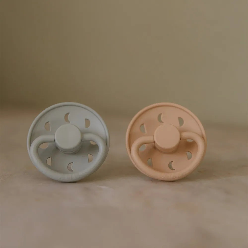 FRIGG Pacifiers has been developed with a focus on function and comfort in everyday life. The round teat shape mimics the shape of the breast and supports a natural sucking technique that many children find comfortable.
