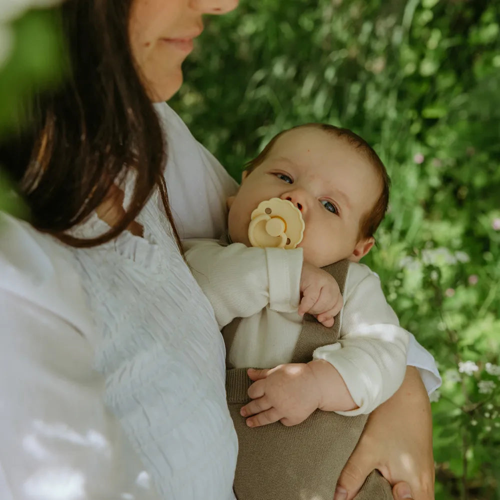 From the "Blossom" pacifier packs FRIGG is inspired by nature in full bloom. You can choose between 5 different packages, each containing 4 Pacifiers in the most beautiful color shades.