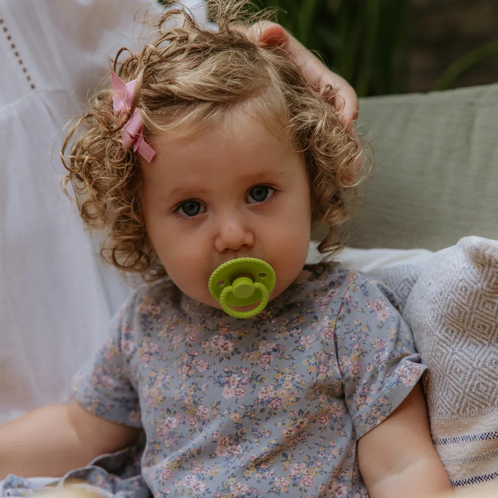 From the "Blossom" pacifier packs FRIGG is inspired by nature in full bloom. You can choose between 5 different packages, each containing 4 Pacifiers in the most beautiful color shades.
