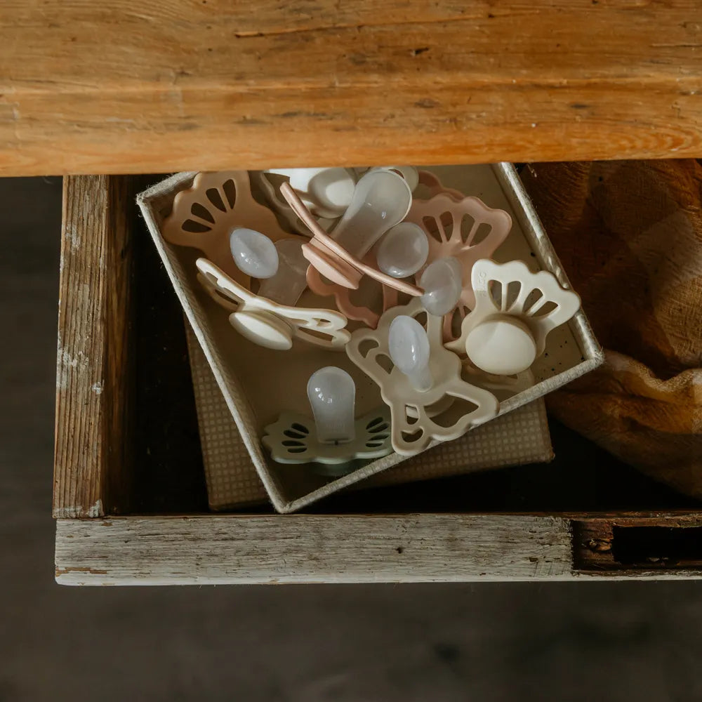 FRIGG Pacifiers is created with great consideration for both child and parent. The shield is made of virgin PP plastic – a clean and strong type of plastic that has never been recycled. This means that we avoid unwanted substances and ensure a uniform, durable and skin-friendly material. Production takes place in Denmark by experienced specialists, where the entire process takes place in-house for maximum control and quality.
