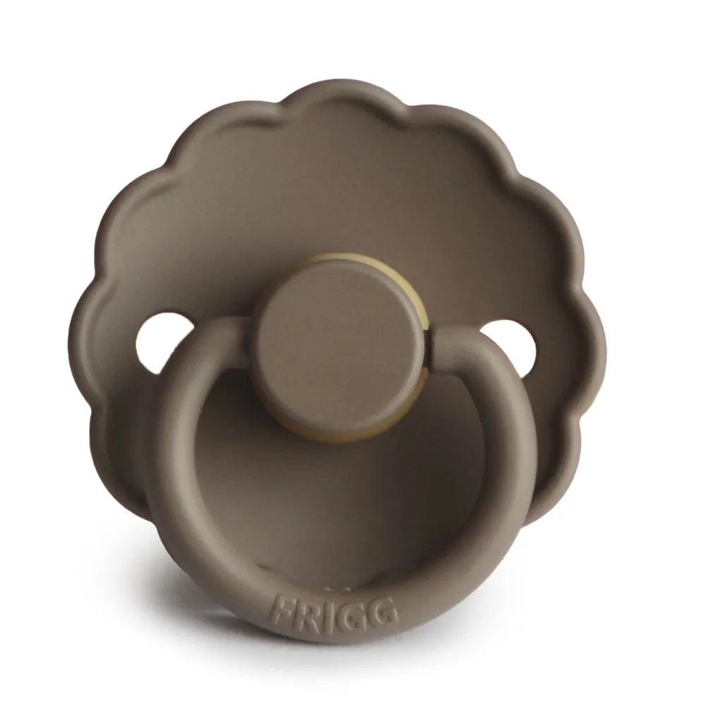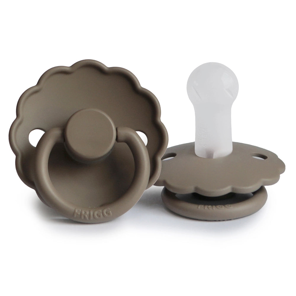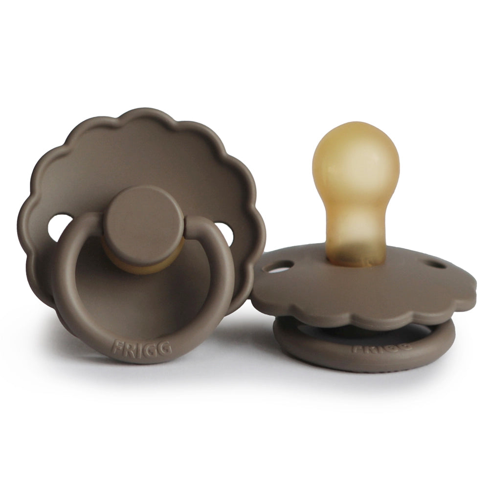 FRIGG Daisy in the color Portobello combines a flower-inspired shield with a light and harmonious expression. The design is inspired by the soft petals of the marguerite, where the rounded shapes give the pacifier a calm and recognizable touch. The characteristic shield creates a soft visual expression, which distinguishes the model from more classic pacifier shapes.