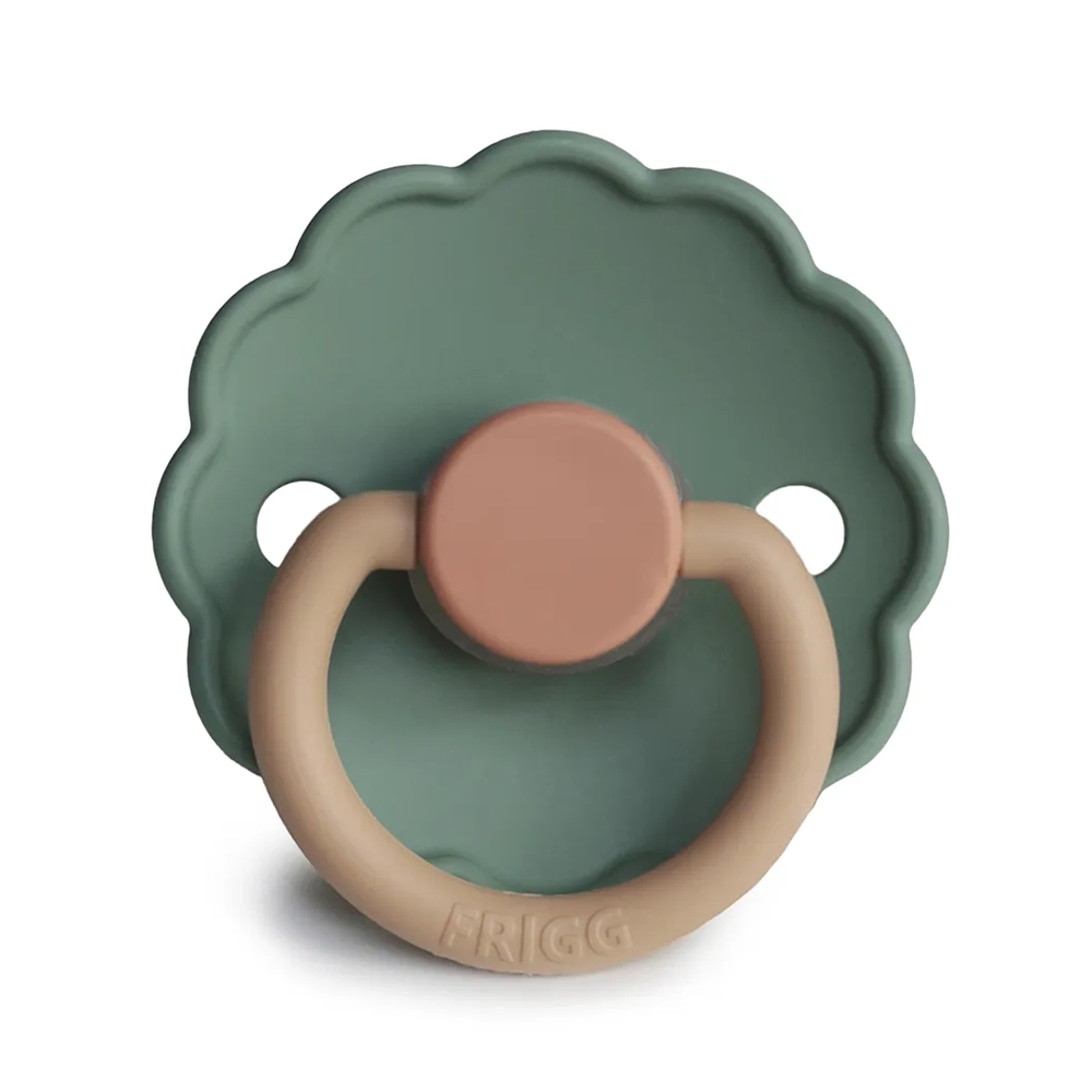 FRIGG Daisy in the color Willow combines a flower-inspired shield with a light and harmonious expression. The design is inspired by the soft petals of the marguerite, where the rounded shapes give the pacifier a calm and recognizable touch. The characteristic shield creates a soft visual expression, which distinguishes the model from more classic pacifier shapes.