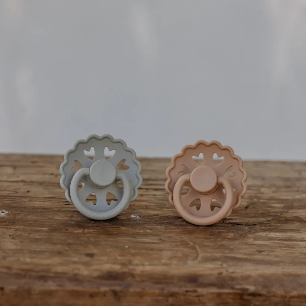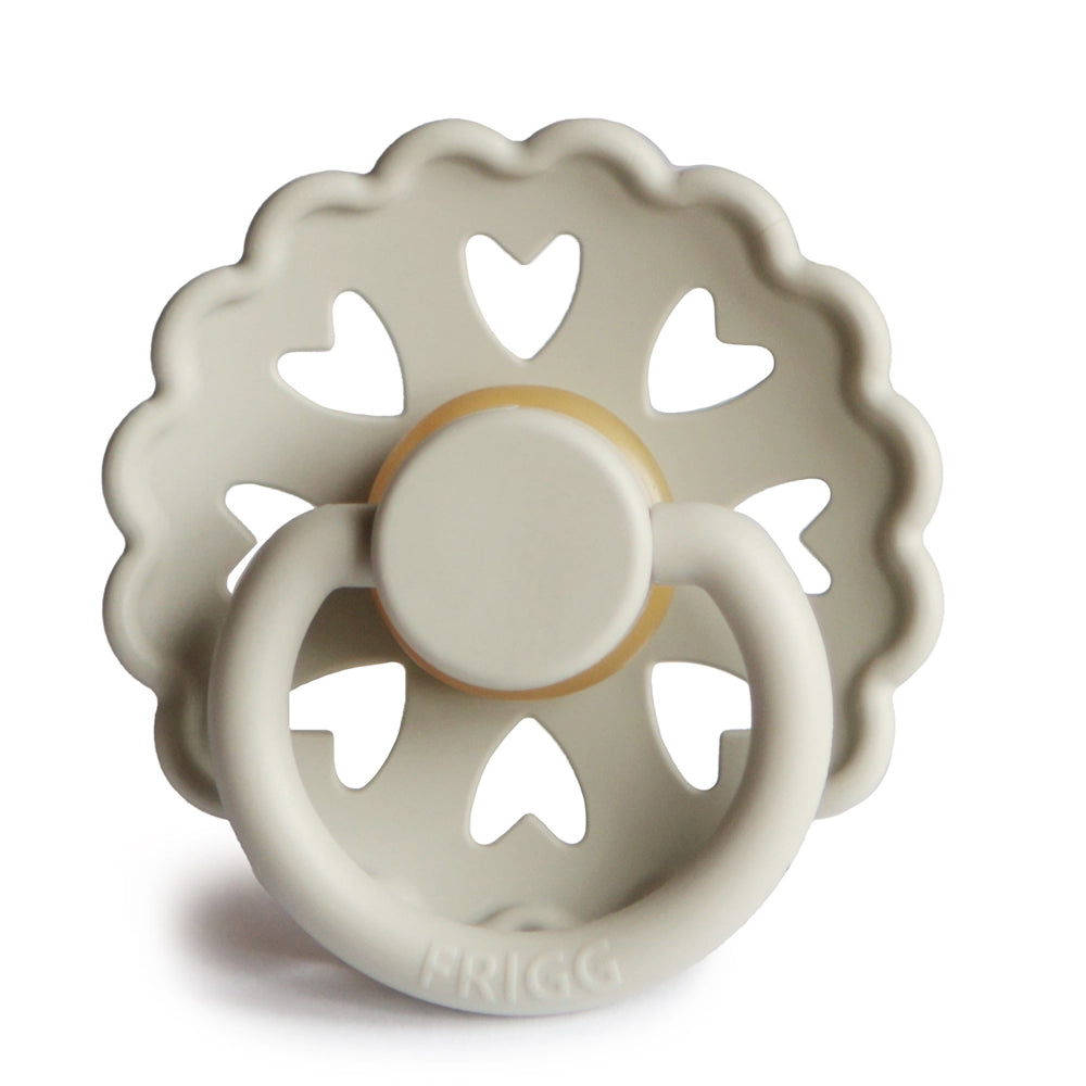 FRIGG Fairytale – Clumsy Hans is an elegant silicone pacifier inspired by H.C. Andersen's fairytale universe and his characteristic paper clips. The shape of the pacifier shield and the small heart details give a calm, Scandinavian expression that fits naturally into everyday life.