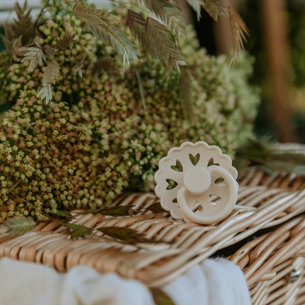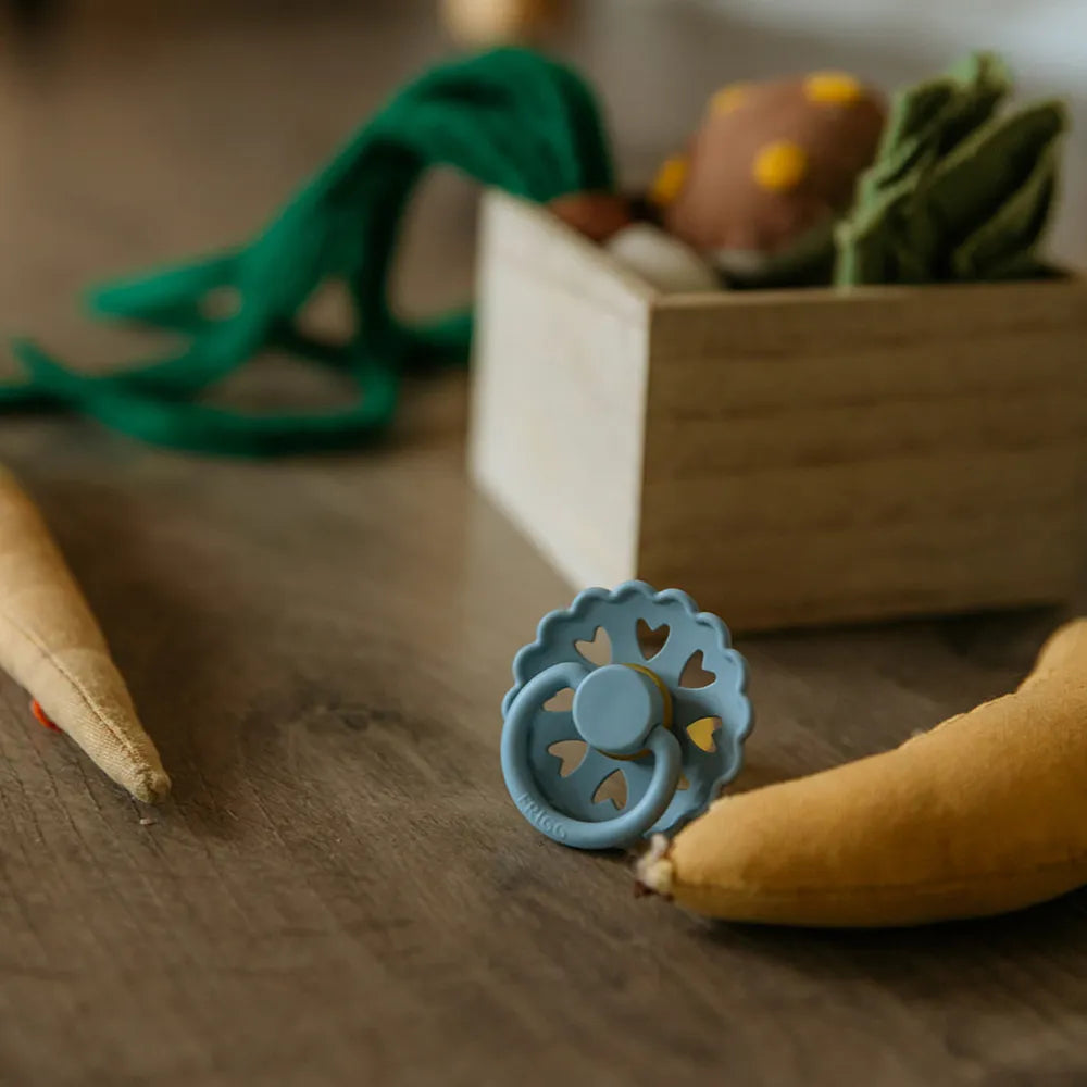 FRIGG pacifiers are created with great care for both child and parent. The shield is made of virgin PP plastic – a clean and strong type of plastic that has never been recycled. This means that we avoid unwanted substances and ensure a uniform, durable and skin-friendly material. Production takes place in Denmark by experienced specialists, where the entire process takes place in-house for maximum control and quality.