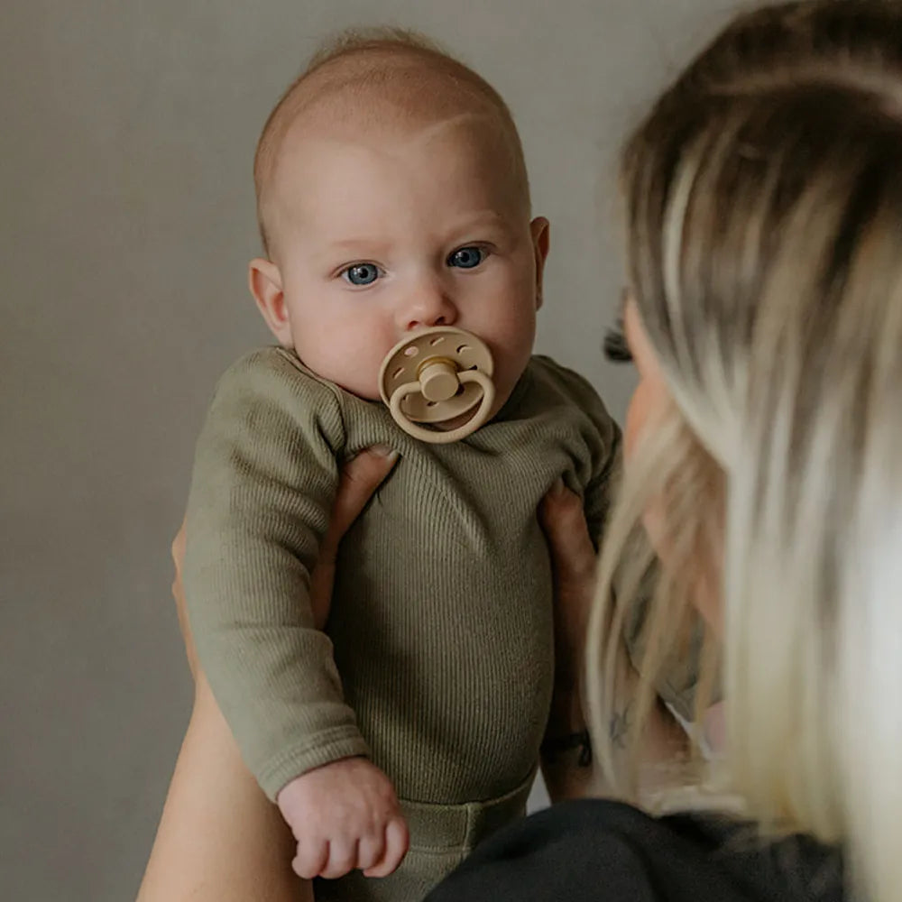 Functionality and comfort: The pacifier is designed to give the child a comfortable and natural sucking experience, which promotes both comfort and development. The round shape ensures that the pacifier lies stably in the child's mouth and creates security during both resting and active periods.