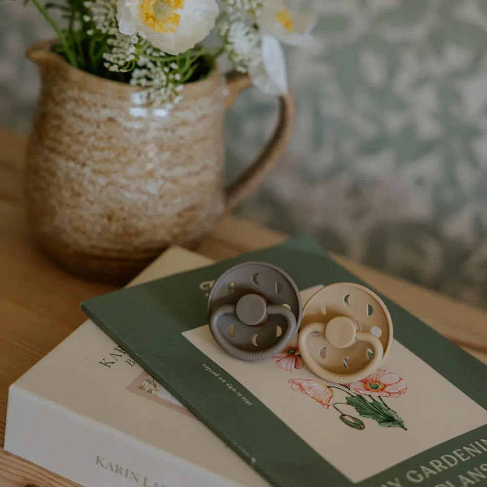 FRIGG Pacifiers is created with great consideration for both child and parent. The shield is made of virgin PP plastic – a clean and strong type of plastic that has never been recycled. This means that we avoid unwanted substances and ensure a uniform, durable and skin-friendly material. Production takes place in Denmark by experienced specialists, where the entire process takes place in-house for maximum control and quality.