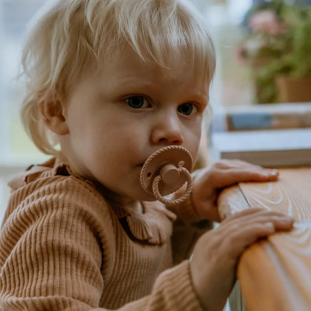 FRIGG Rope in the color Croissant is a pacifier with a rope-inspired design that gives the model a discreet structure and distinct shape.