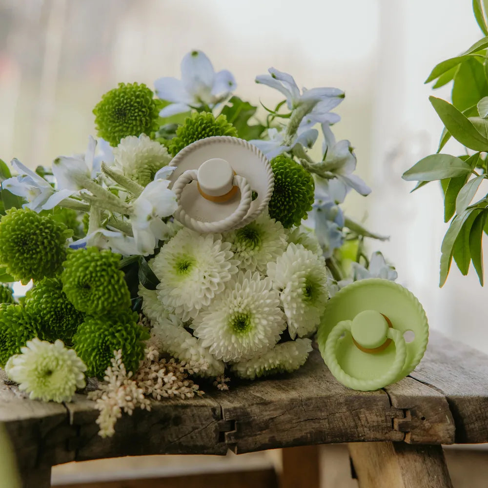 FRIGG Rope in the color Green Tea is a pacifier with a rope-inspired design that gives the model a discreet structure and distinct shape.
