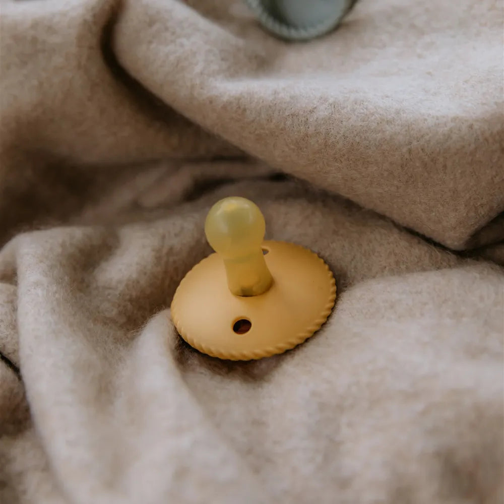 Functionality and comfort: The pacifier is designed to give the child a comfortable and natural sucking experience, which promotes both comfort and development. The round shape ensures that the pacifier lies stably in the child's mouth and creates security during both resting and active periods.