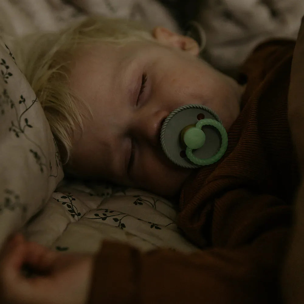The Night model has a discreet luminous effect, which makes it easier to find the pacifier in the dark without turning on the light. Rope-the design is inspired by the structure of the rope and gives the shield a discreet, textured character.