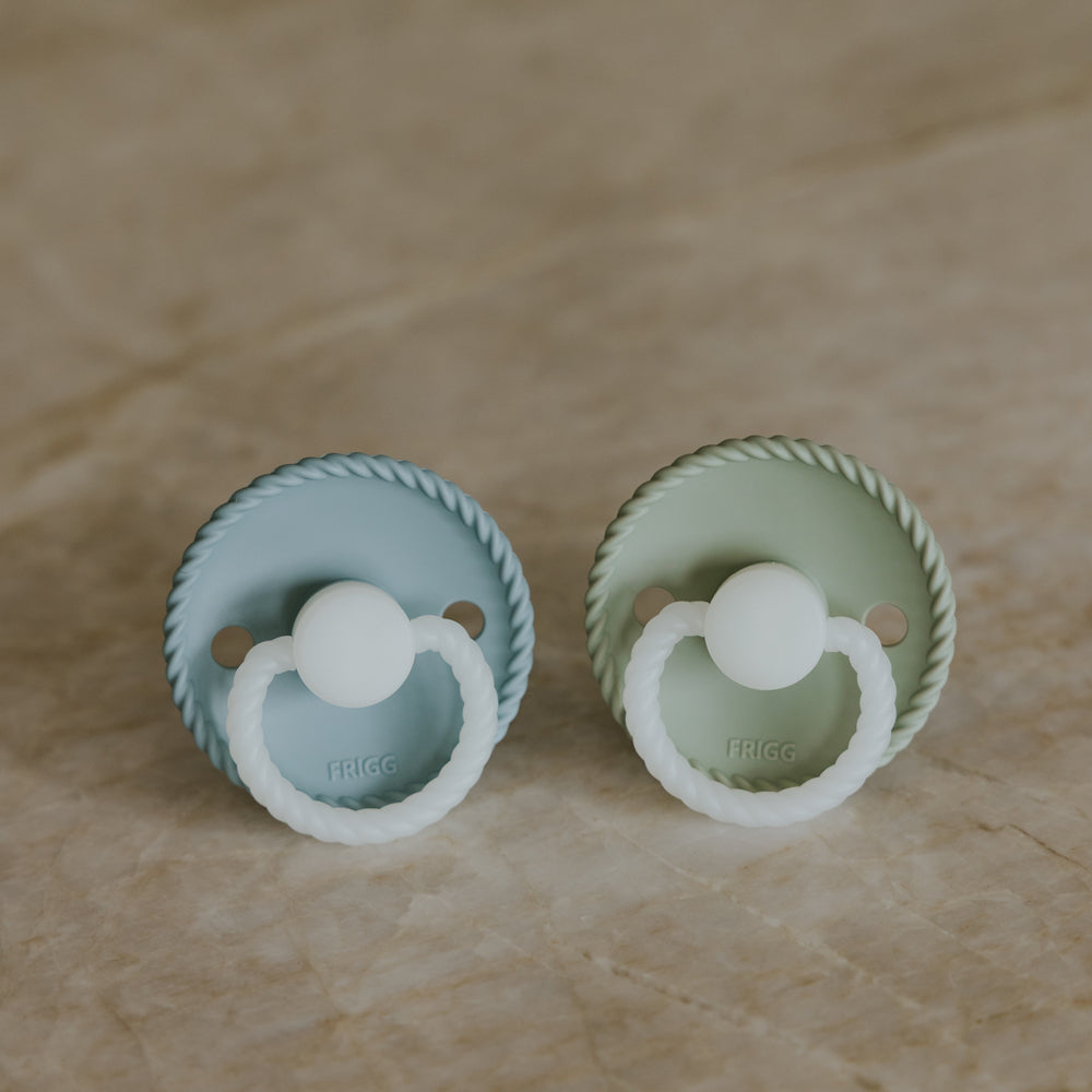 FRIGG Rope Night 2-pack in the colors Stone Blue and Sage combines well-thought-out Scandinavian craftsmanship with functional simplicity. The model combines a distinctive design with everyday comfort and has been developed to meet high standards for baby safety.