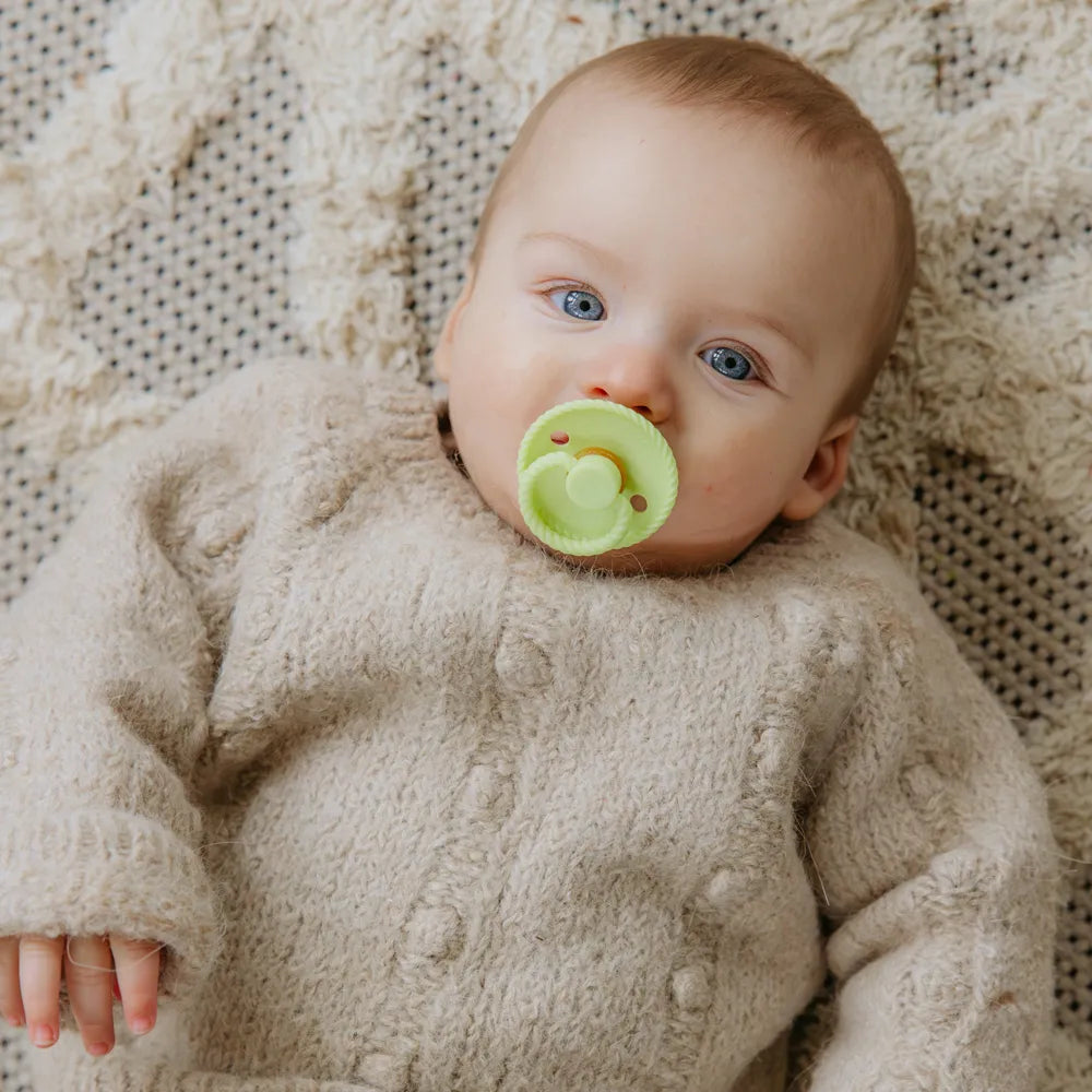 FRIGG pacifiers are created with great care for both child and parent. The shield is made of virgin PP plastic – a clean and strong type of plastic that has never been recycled. This means that we avoid unwanted substances and ensure a uniform, durable and skin-friendly material. Production takes place in Denmark by experienced specialists, where the entire process takes place in-house for maximum control and quality.