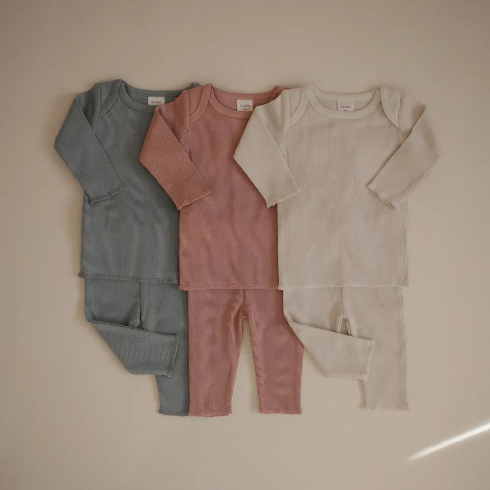 Mushie 2-piece designed as a cotton set is designed for function and use in everyday life. The set consists of a long-sleeved blouse and a pair of trousers in a soft, ribbed quality that feels comfortable against the baby's skin and at the same time provides a flexible fit. The ribbed knit follows the body without tightening, which makes the set suitable both for playing on the floor, napping in the pram and as an extra layer on cool days.