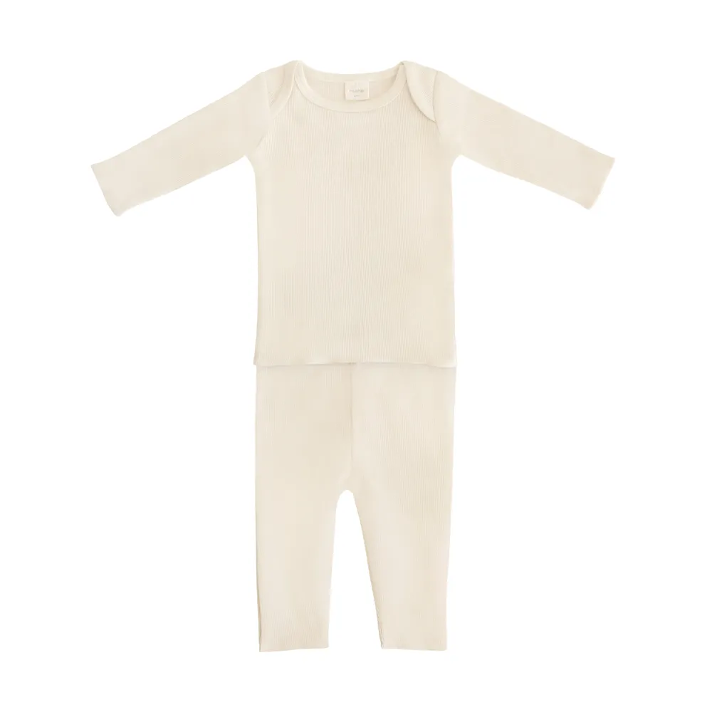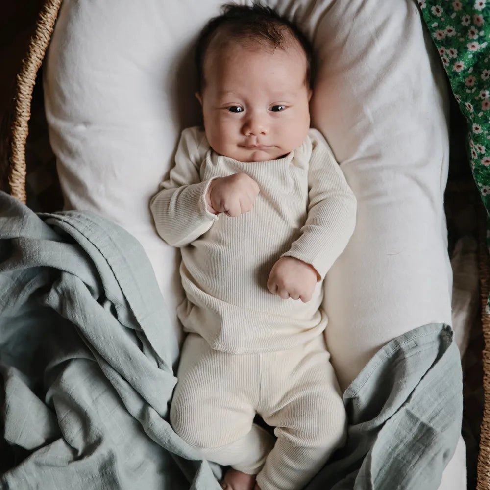 The material is a mixture of 95% organic cotton and 5% elastane, which provides a fine balance between natural softness and the slight stretch that makes it easier for the child to move freely. The pre-washed rib gives an extra soft surface from the first use and helps the set keep its shape nicely, even when it is used often. For many parents, it is precisely the type of eco baby clothes that work best in the wardrobe: simple, durable and easy to combine with other styles. The trousers have an elastic waistband, so they are easy to take on and off when changing nappies, and the blouse is designed to fit comfortably without feeling heavy or stiff. The timeless look makes the set a safe choice all year round, regardless of whether it is used alone indoors or as a layer under outerwear. A practical and simple set that fits into a Scandinavian wardrobe, where quality and function go hand in hand.