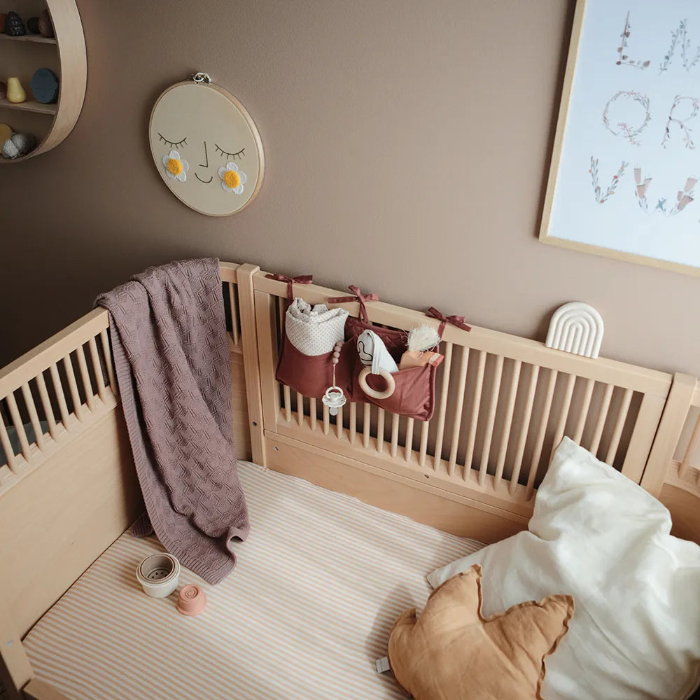 From the bed pocket Mushie is a simple solution for you who would like to have the most important small things gathered in one place by the child's bed or by the changing area. When everyday life runs with snuggles, nighttime awakenings and quick nappy changes, it makes a noticeable difference to be able to reach for