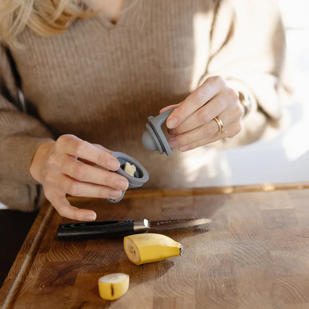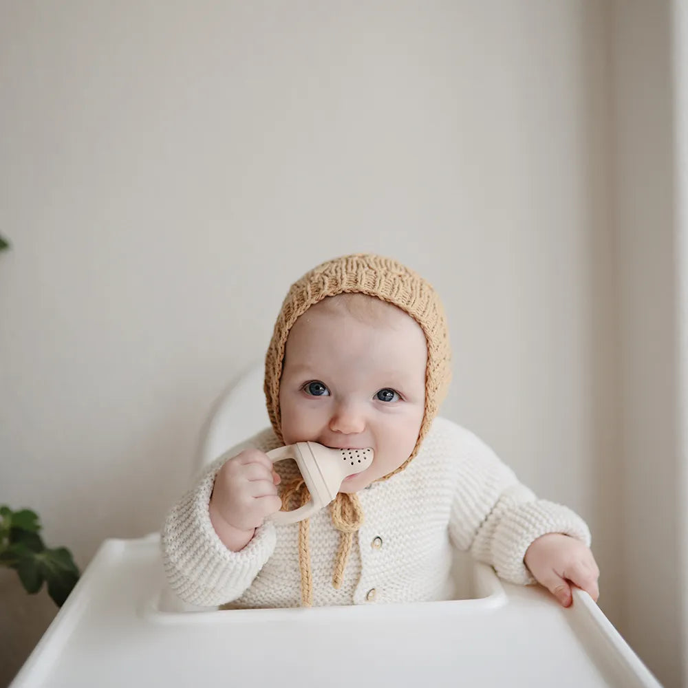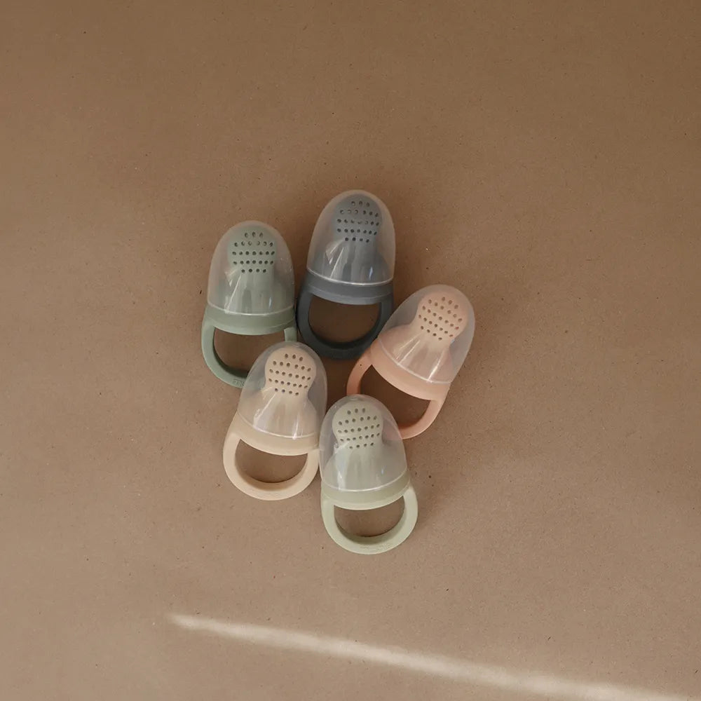 Mushie fruit pacifier in 2-pack is developed for the first taste experiences, where the child can explore fruit and soft foods at a leisurely pace. A fruit pacifier makes it possible to introduce new flavors without serving larger pieces of food, providing a more controlled and safe way of tasting.