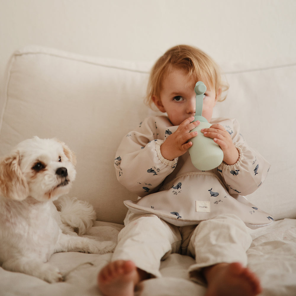 The set also includes reusable silicone puree bags, which can be used for smoothies, yogurt or purees. They are practical both at home and on the go and make it easy to serve small portions without waste. The bags can be filled again and again and are therefore a flexible solution for small meals or snacks during the day. The soft silicone makes them comfortable for the child to hold, while the material is robust enough for daily use.