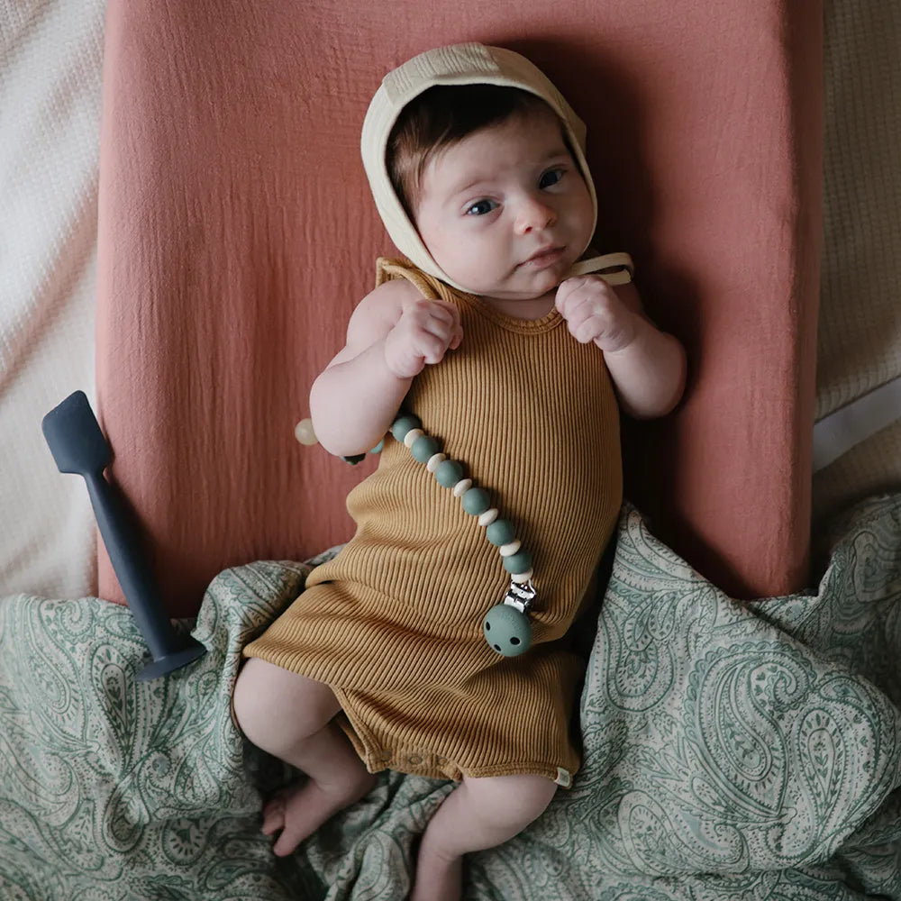 Mushie The Luna pacifier chain is a simple solution for families who want a functional solution that at the same time has a calm and timeless look.