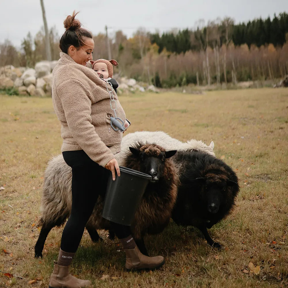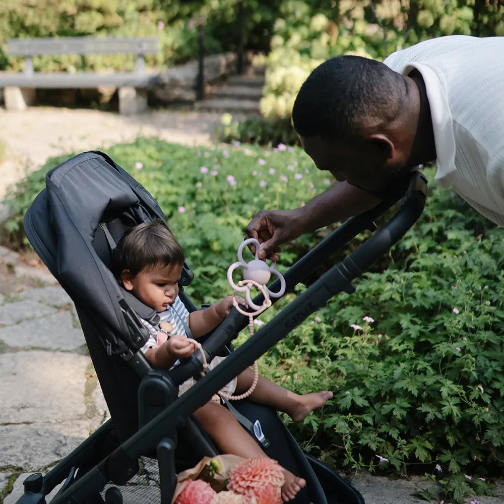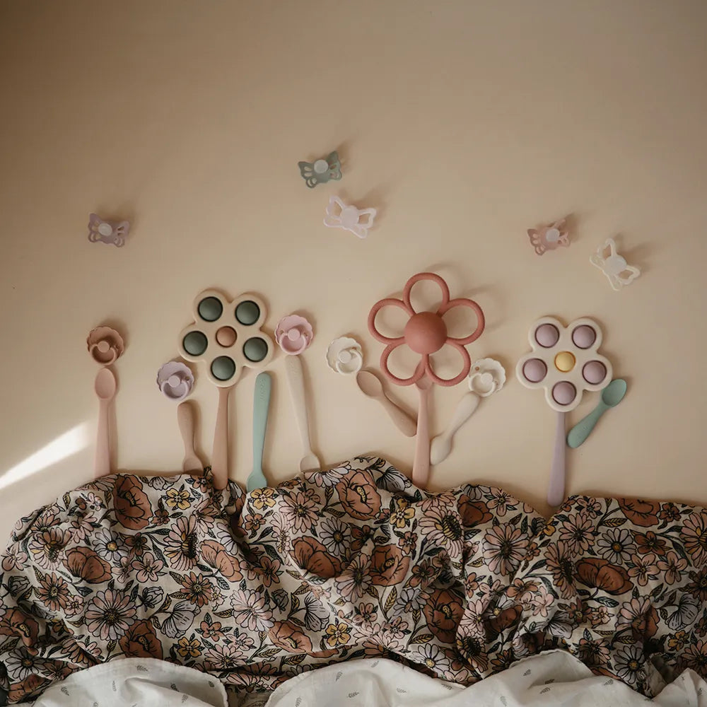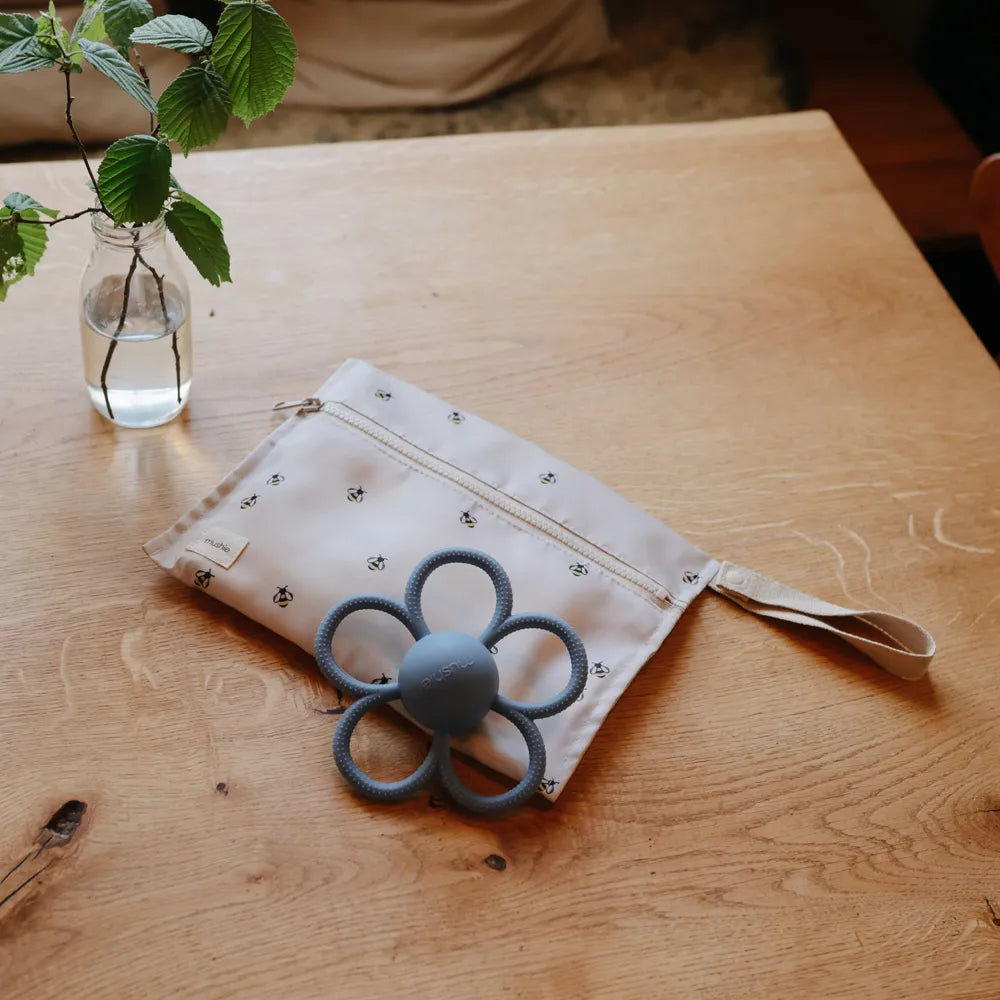 The soft surface makes it suitable during teething, where the child often looks for a material that is pleasant to bite into. Inside are small plastic noise pellets, which create a gentle rustling sound when the child shakes or turns the rattle. It supports sensory play and gives the child a simple cause-and-effect experience: When I move it, a sound comes out. The Mushie rattle teether is available in several designs with a calm, Scandinavian look, so you can choose the variant that suits the child's universe. As a gift for baby showers or as a permanent part of the diaper bag, it is a simple solution that combines comfort, play and a material in one and the same product.