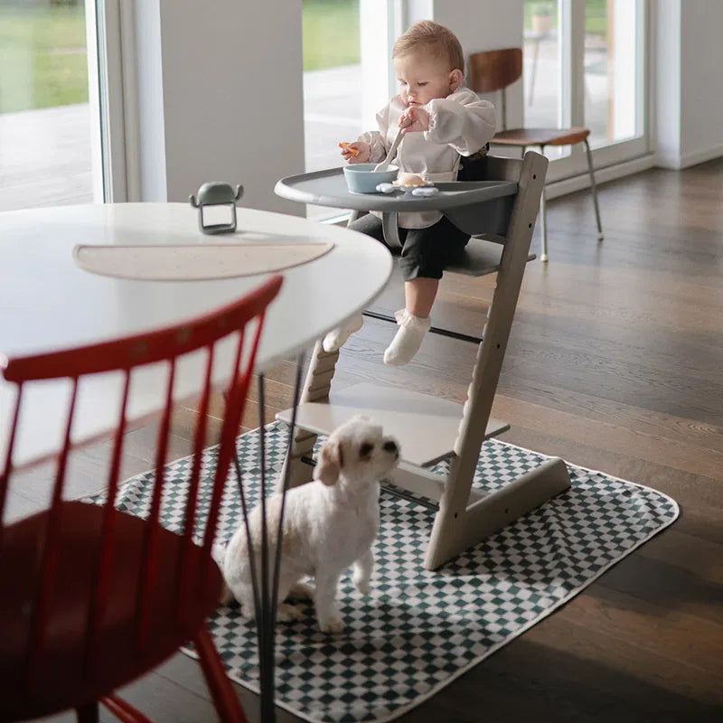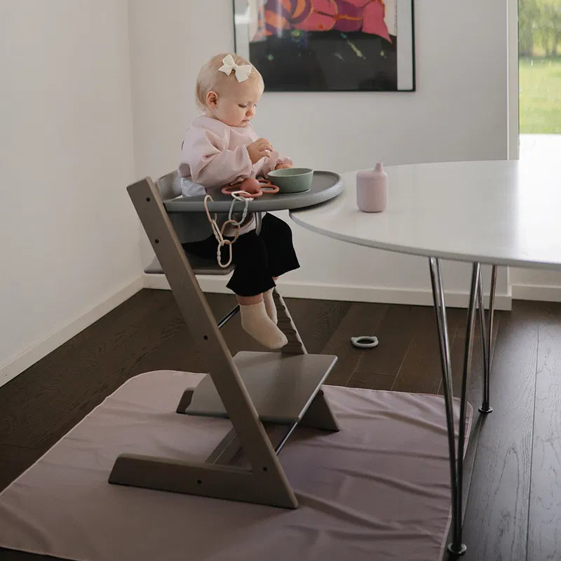 Regardless of whether it is used under the high chair, under a small chair at the dining table or as a base for creative activities, it functions as a flexible everyday product that fits naturally into a calm, Scandinavian everyday life with children.