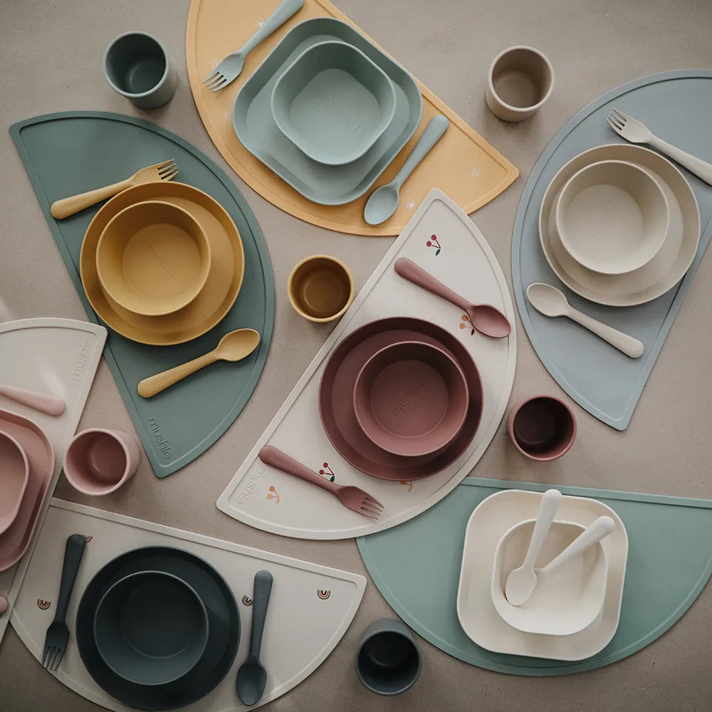 Create calm around the meal with a subdued Mushie placemat that makes everyday life a little easier when little hands have to practice eating themselves. A placemat is a simple solution that both protects the tabletop and helps collect crumbs, spills and small accidents in one place, so that cleanup becomes more manageable.